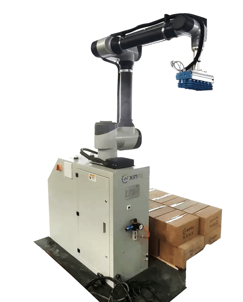 Compared to traditional large-scale industrial robotic palletizing systems, it offers significantly lower deployment costs (no safety fences required) and lower operating costs (lower energy consumption).